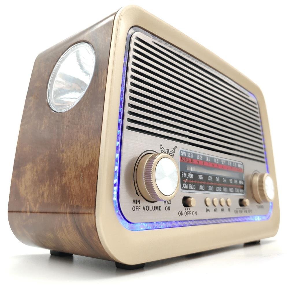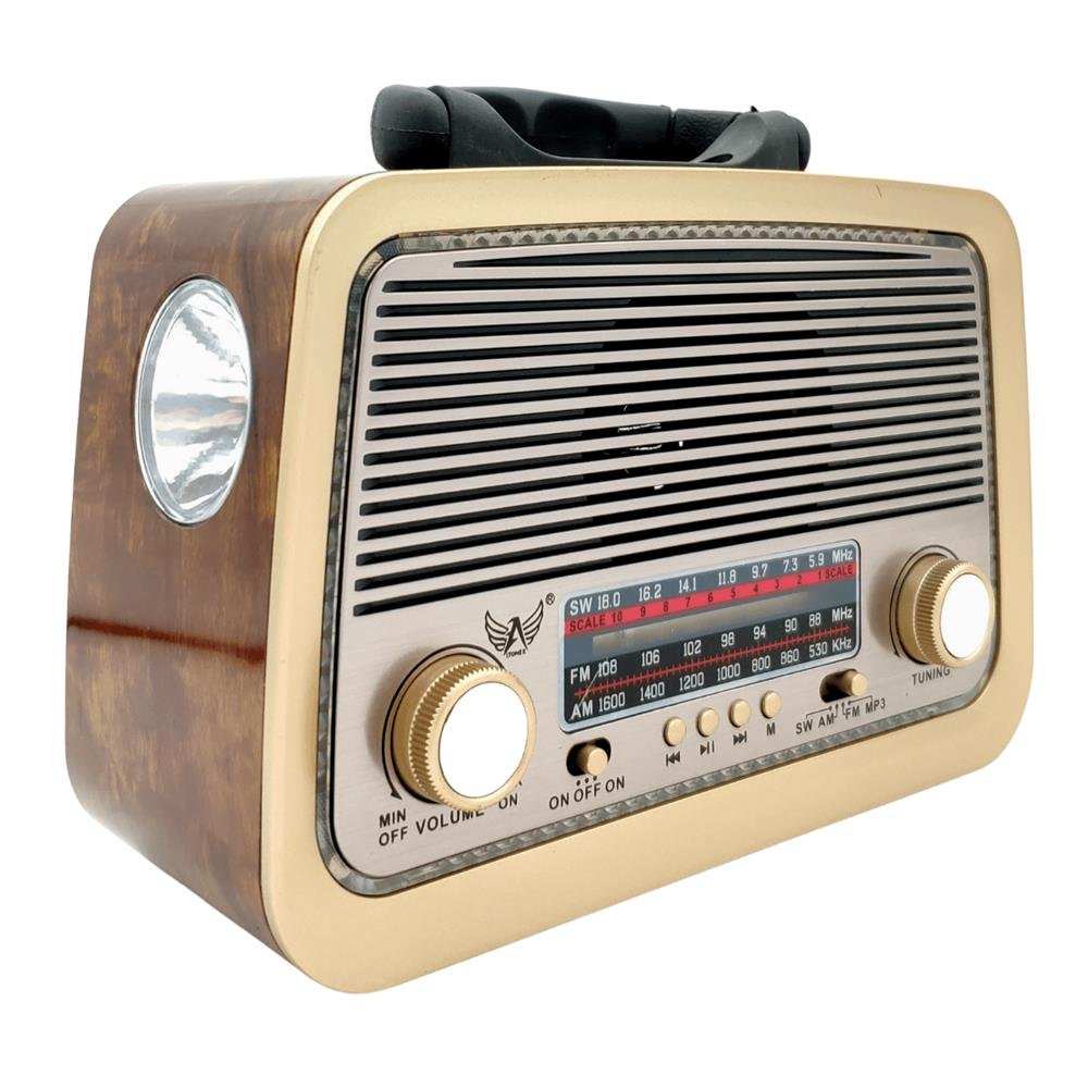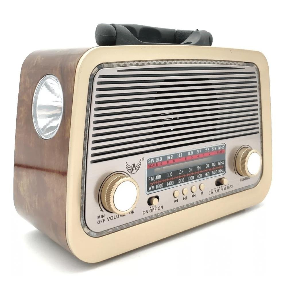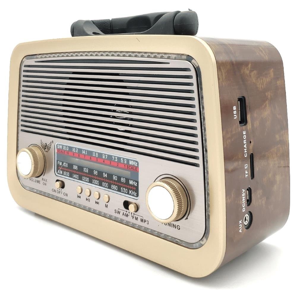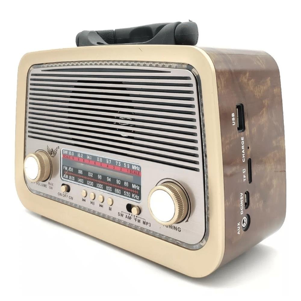 Rádio Retro Bluetooth Am Fm Sw Usb Bateria Recarregavel Aux Sd Marrom Escuro