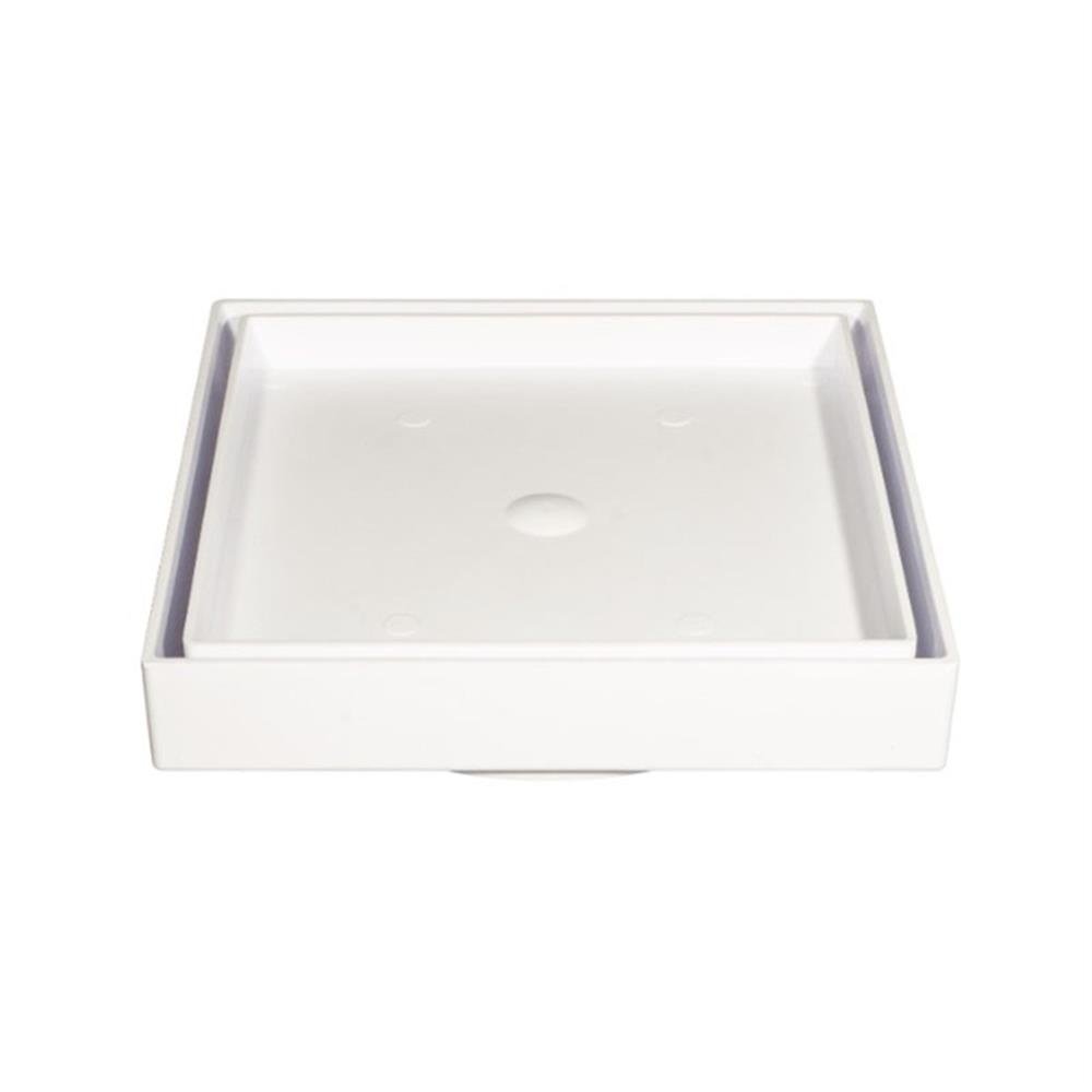 base e tampa produzidos em poliestireno de alto impacto(psai ) 10x10cm saida dn100mm.acompanha grade de protecao contra insetos.a tampa do ralo e o revestimento do proprio piso.