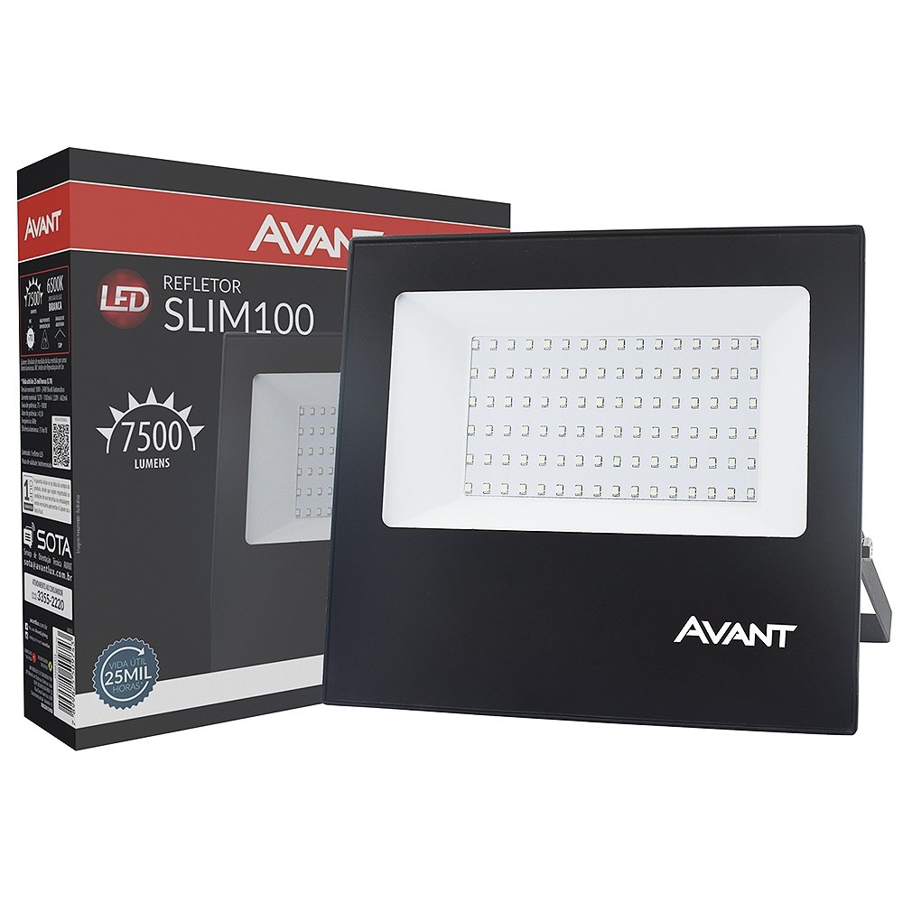 Refletor Avant LED, 100W, Slim 6,5K, 7500 Lumens, Preto