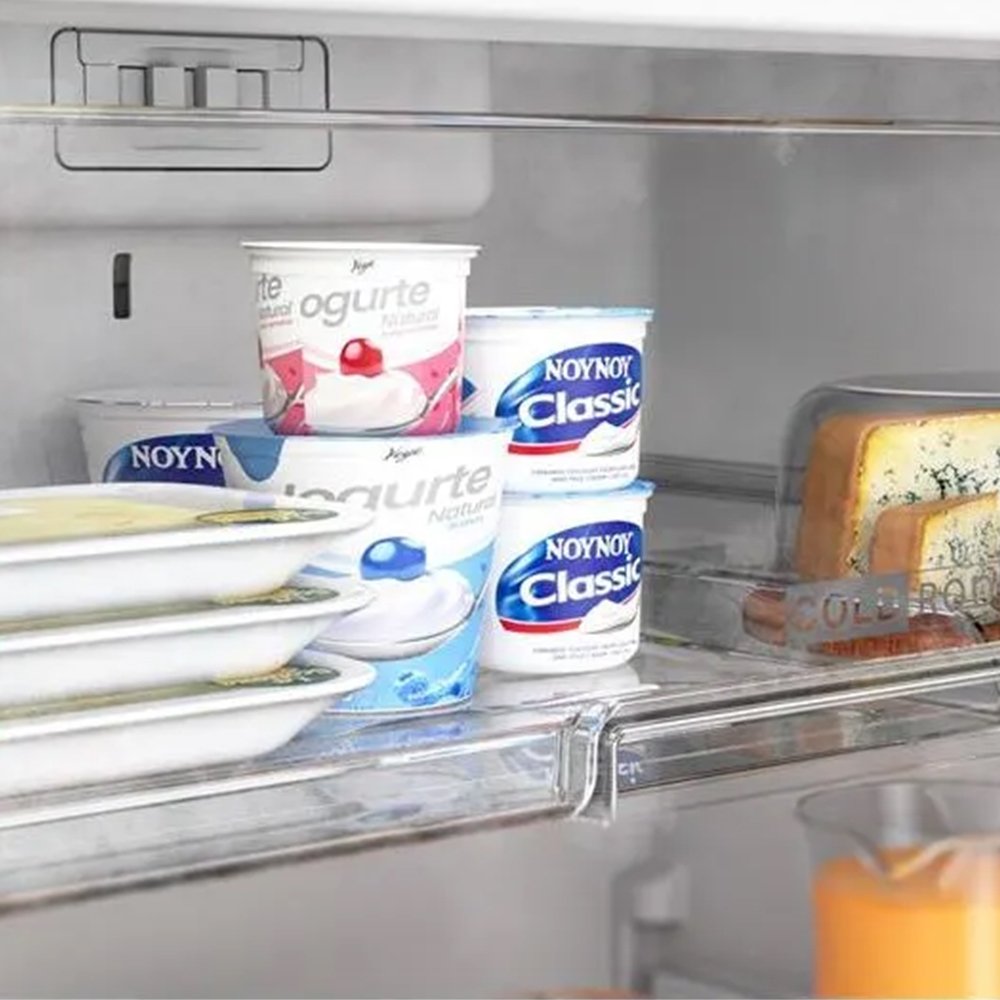 Já teve dificuldade de encontrar ou esqueceu algum alimento perdido na geladeira? Prateleiras de vidro e design com borda infinita para uma visão panorâmica e nada fica fora do seu alcance.