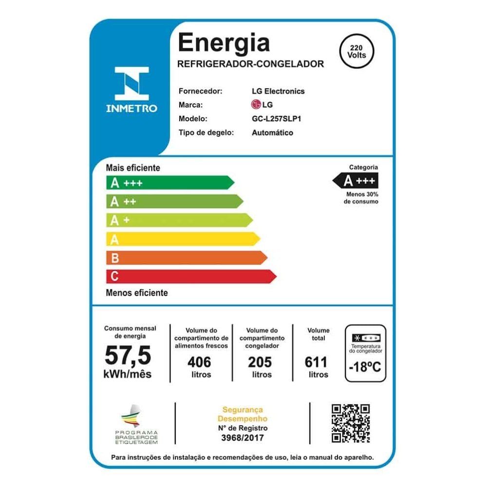 Refrigerador LG 611 Litros GC-L257SLP - Side by Side, Inverter, Inox, 220V