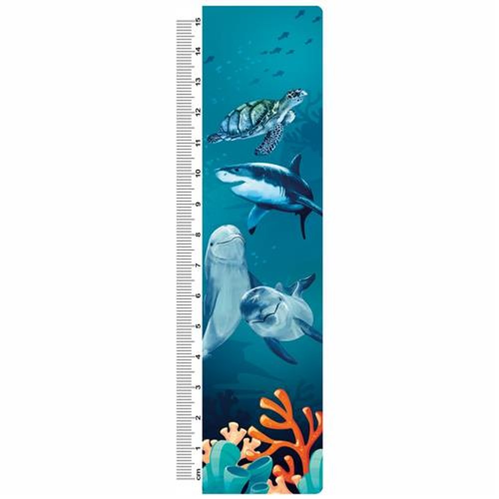 Régua Escolar Saga Impressão em Led Desenhos em Flip Imagem Oceano 15cm Embalagem com 12 unidades