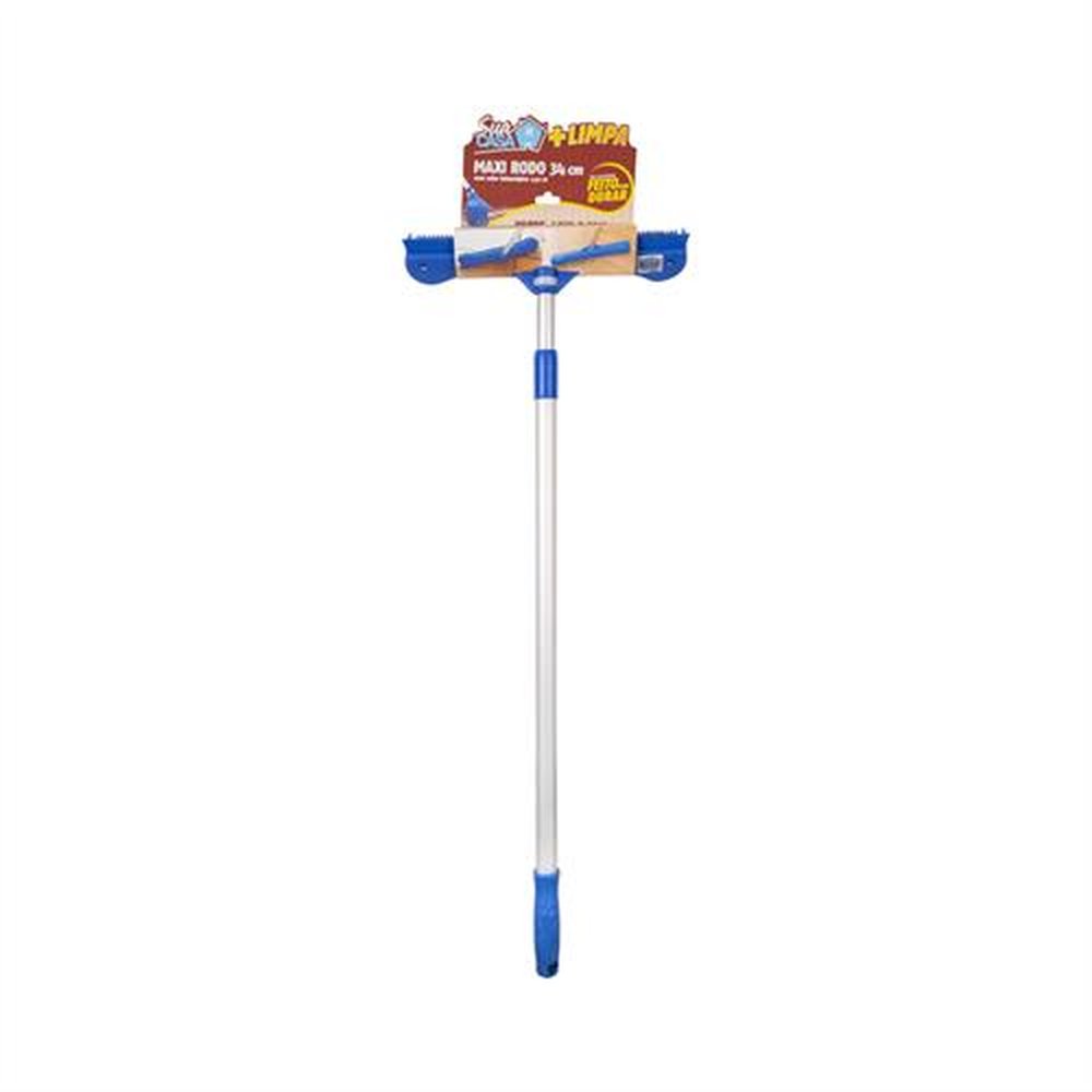 o maxi rodo combina um espessa escova c/cerdas de borracha p/varricao e um rodo c/lamina de borracha extra macia para secar superficies c/eficiencia.cabo telescopio aluminio 1,4m
