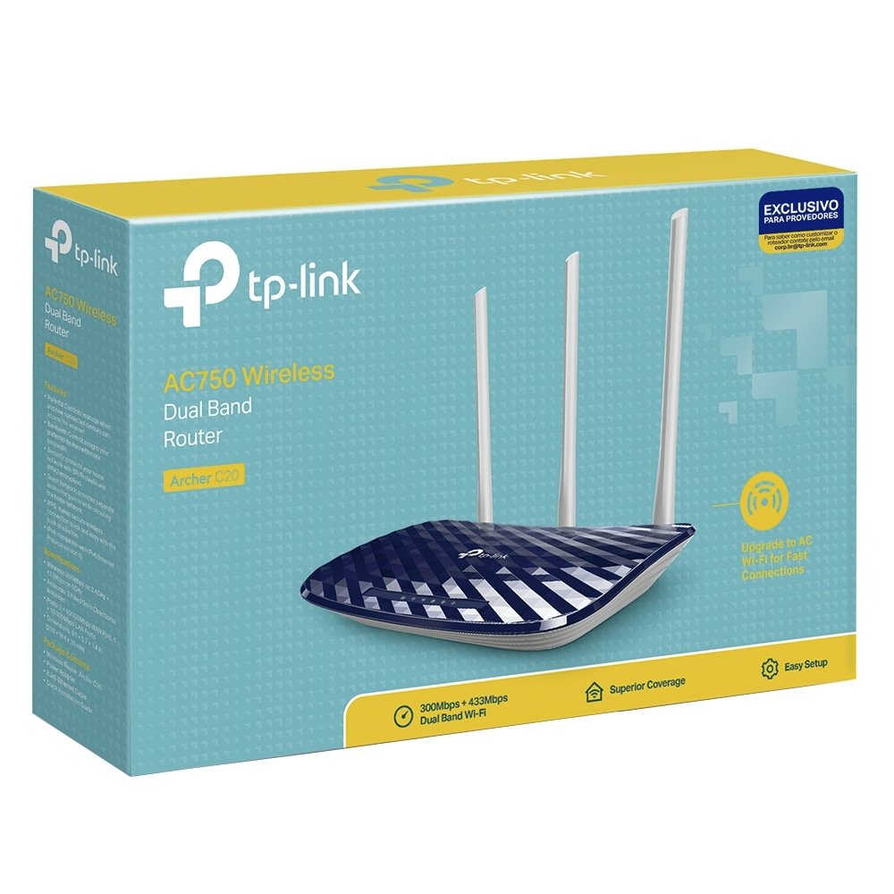 Roteador Wireless Tp-Link Archer C20W AC750, 733Mbps, Dual Band, 4 portas, 3 Antenas