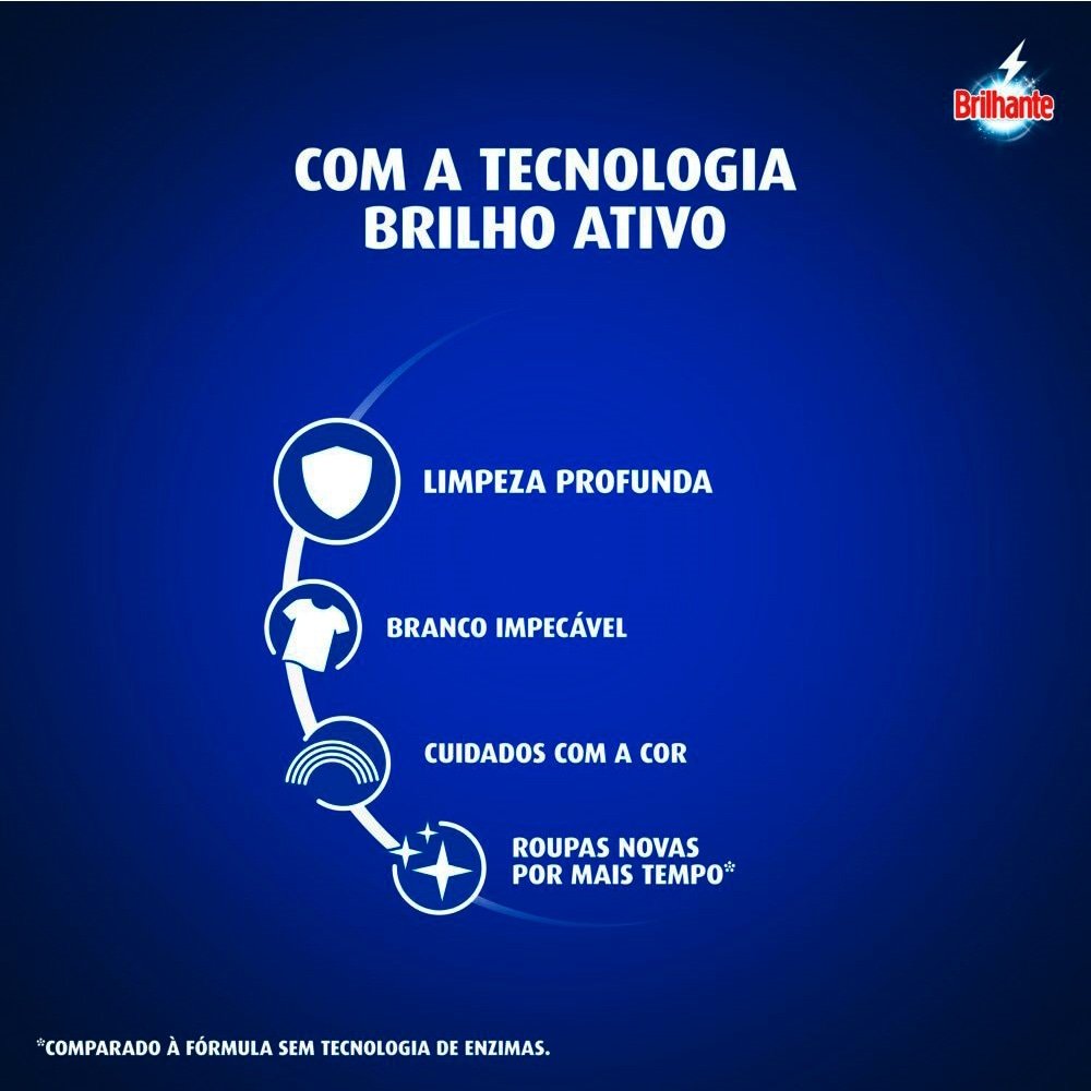 Tecnologia Brilho Ativo que previne o amarelamento e desgaste das roupas