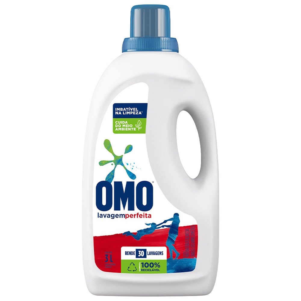 Sabão Líquido Omo Lava Roupa Lavagem Perfeita 3L - Embalagem com 4 Unidades