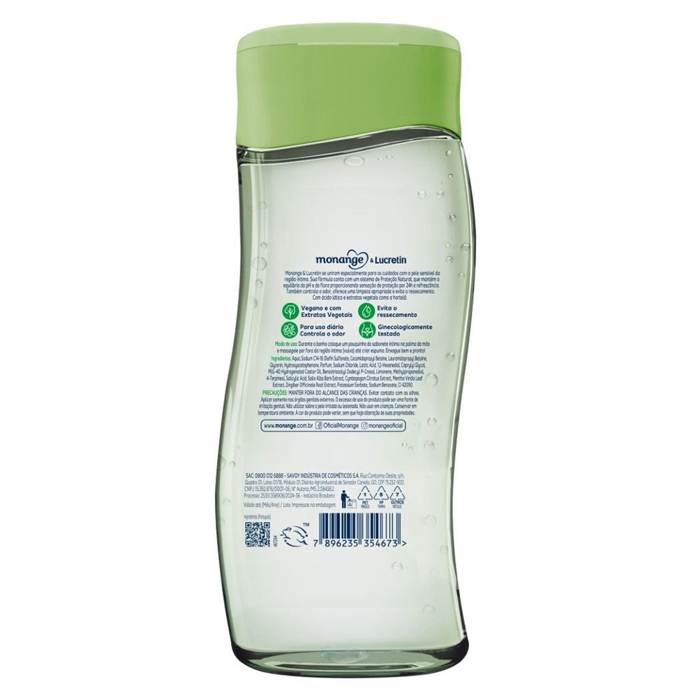 Kit Sabonete Líquido Íntimo Monange & Lucretin Frescor 200ml - Embalagem com 2 Unidades