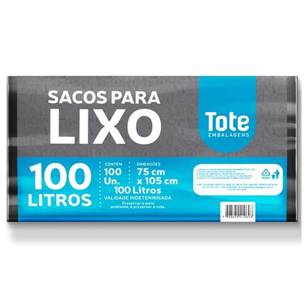 Saco de Lixo 100 Litros Rótulo Verde TOTE- Tamanho: 75 x 105 x 0,7- Volume: 100 unidades- Cor: Preto.