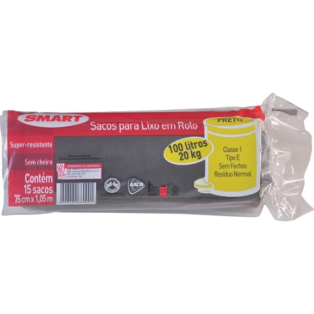 Saco para Lixo Smart Rolo Preto 100L Embalagem com 15 Unidades