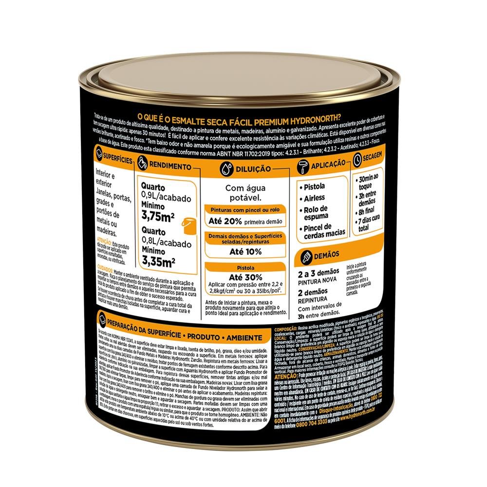 Seca Facil Esmalte Base Agua Brilhante Hydronorth Preto Lata 900 Ml