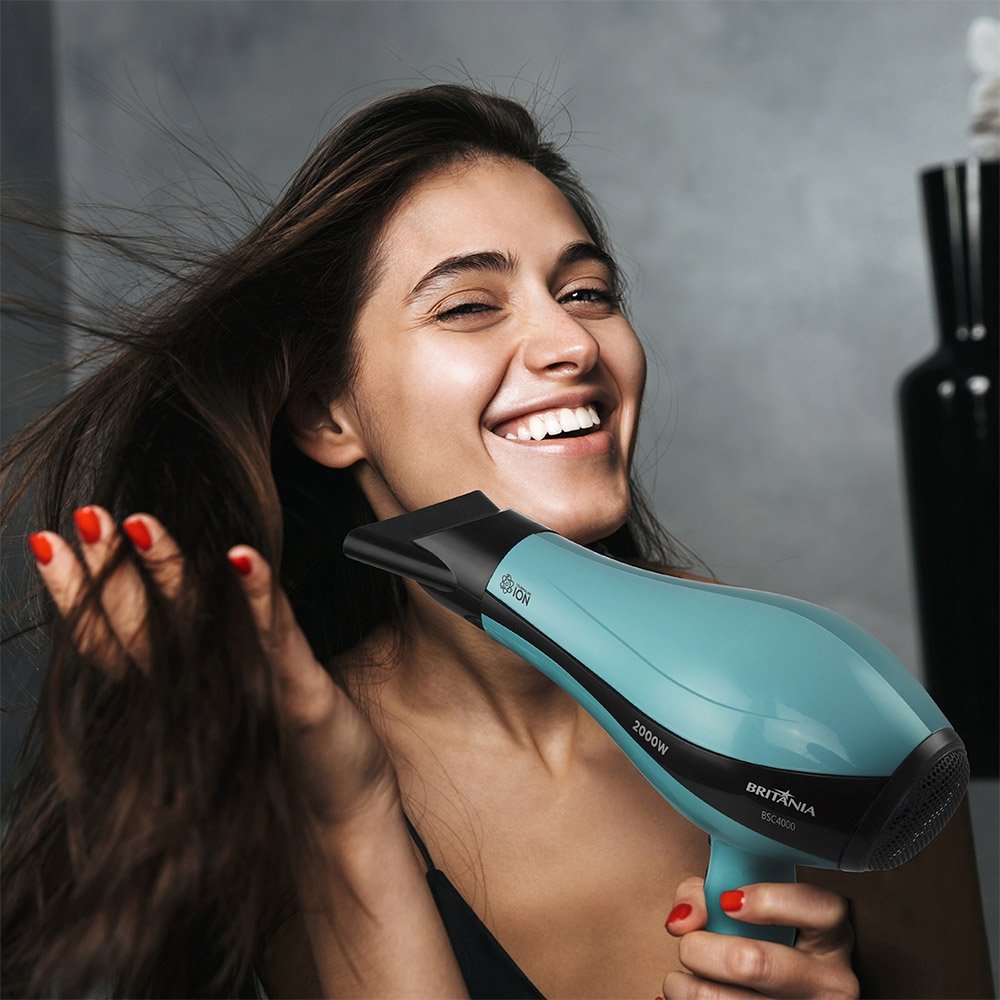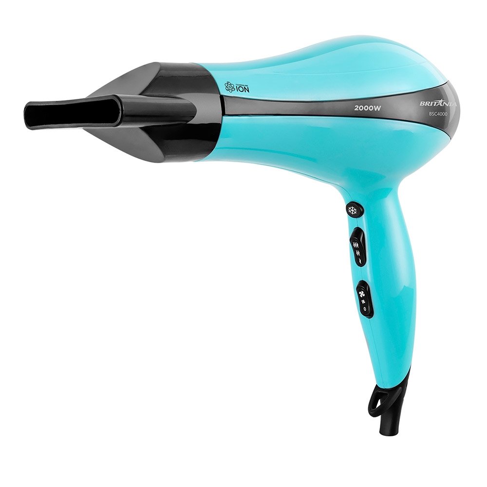 Secador de Cabelo Britânia com 3 Temperaturas, 2 Velocidades, 2000W, Azul Claro, 220V
