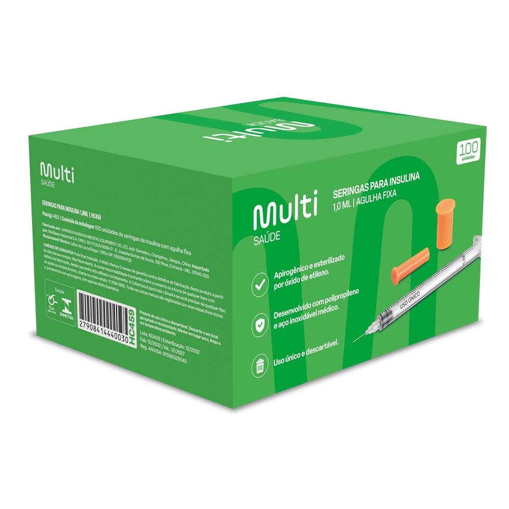 Seringa de Insulina 1ml Com Agulha caixa com 100 unidades Multi Saude - HC459