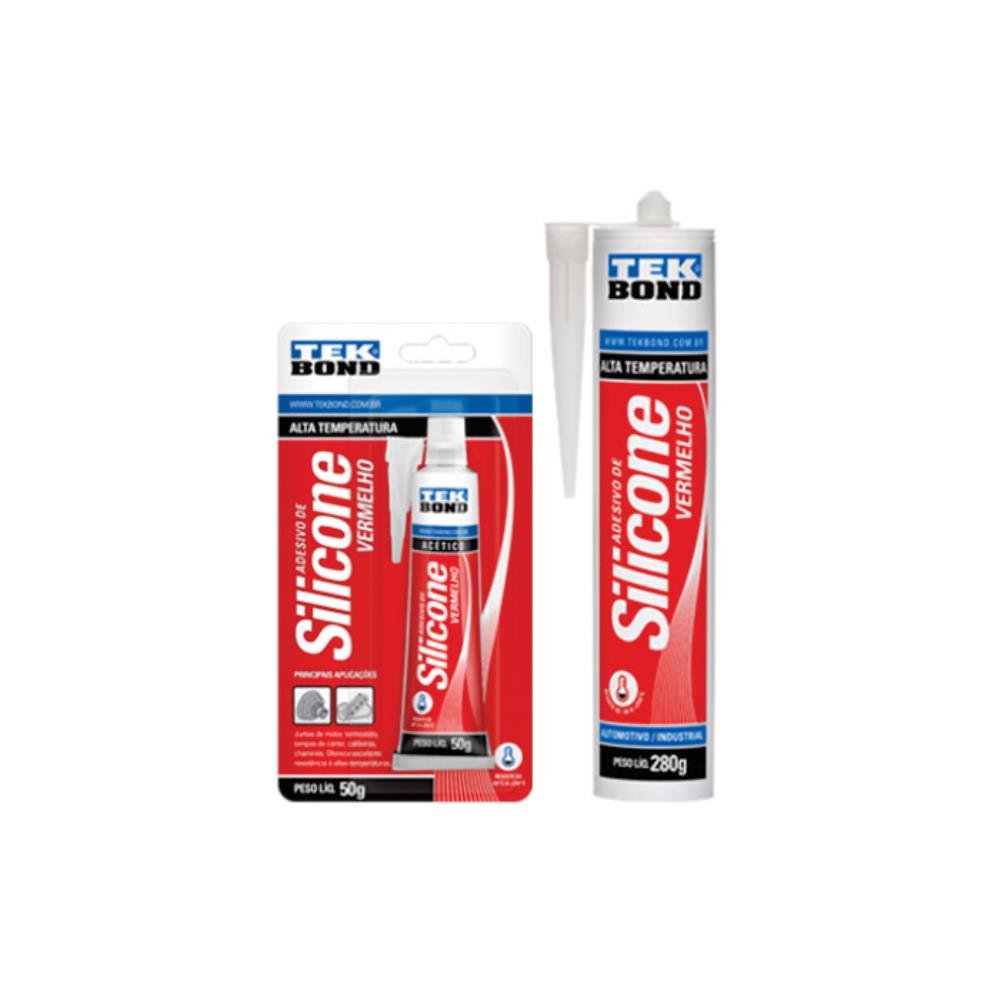 Silicone Acético 50G Alta Temperatura Vermelho Com 12 Unidades Tekbond