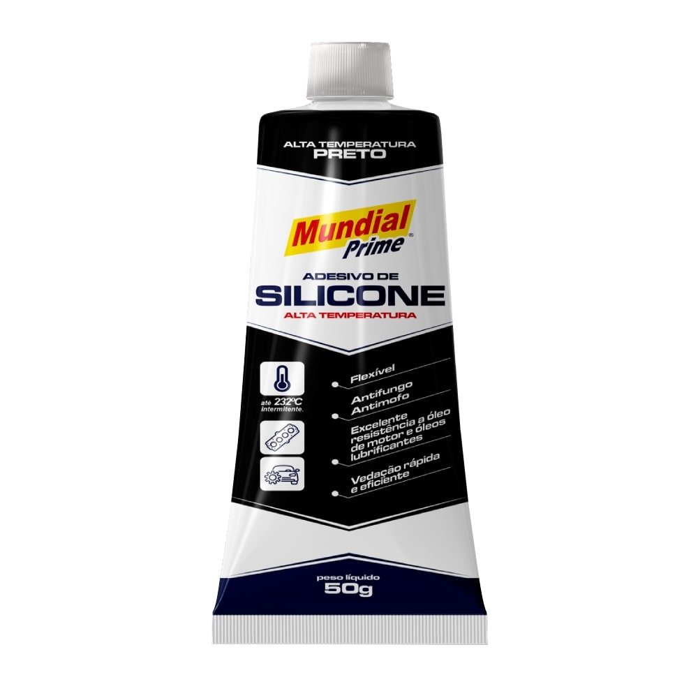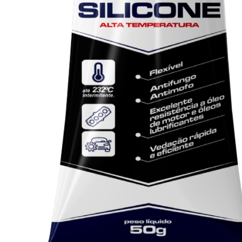 Adesivo de silicone acético de alta temperatura, ideal para aplicações em motores e sistemas de transmissão.