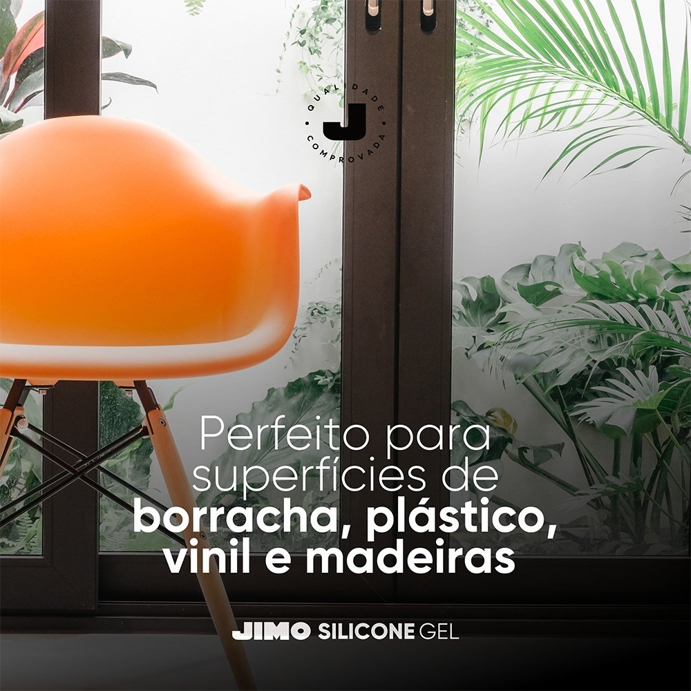 Jimo Silicone Gel é um produto a base de silicone em meio aquoso, especialmente formulado para proteger, conservar e dar brilho aos materiais, destacando e renovando a cor de borrachas, plásticos, vinis, madeiras e outras superfícies.