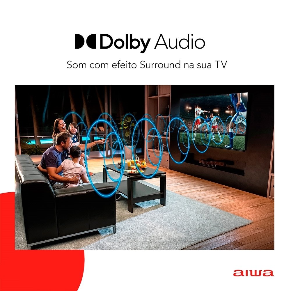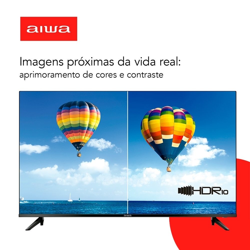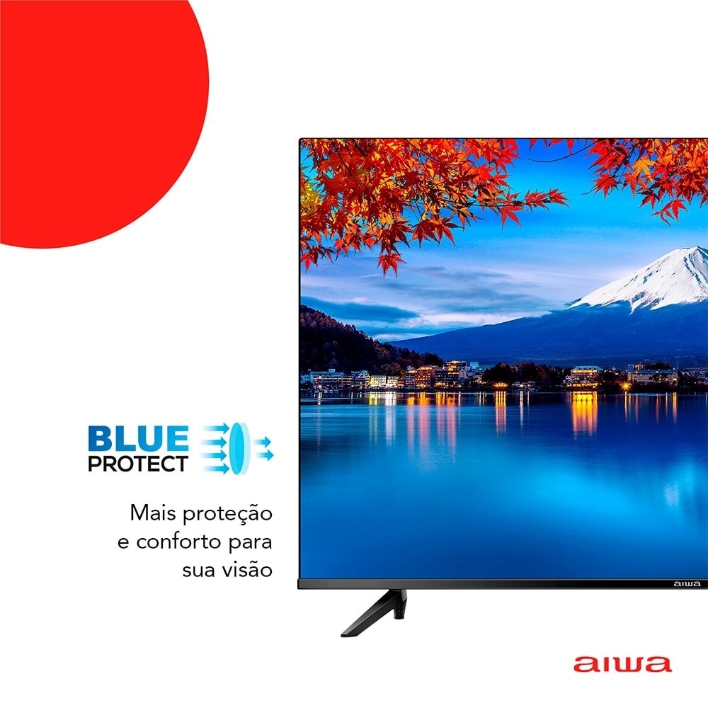 Smart TV 50¿ 4K D-LED Aiwa IPS Wi-Fi Bluetooth Com resolução 4K e tecnologia HDR10 frequência de 60Hz, que proporcionam imagens em alta definição, com aprimoramento de cores, contraste e imagens mais próximas da vida real. Além disso, tenha experiência de som surround com a tecnologia Dolby áudio. Som de cinema na sua casa! Assista a Netflix, Amazon Prime e Youtube, e acesse a APP STORE para acessar diversos aplicativos na sua Smart TV. Blue protect, a tecnologia reduz em até 90% a emissão de ondas de luz azul. A luz azul tem efeitos que prejudicam os olhos e causam cansaço visual. Garanta mais proteção e conforto para a sua visão e da sua família! A TV tem borda ultrafina de 1,4mm e proporciona, além de design sofisticado e elegante, uma imersão visual impressionante. O processador quad-core de quatro núcleos proporciona mais velocidade e qualidade de imagem para que você possa ver os seus conteúdos favoritos. Para completar ela conta com sistema operacional Linux 5.3, 3-HDMI, 2-USB, 1-Saída óptica e Wi-Fi. Marca Aiwa