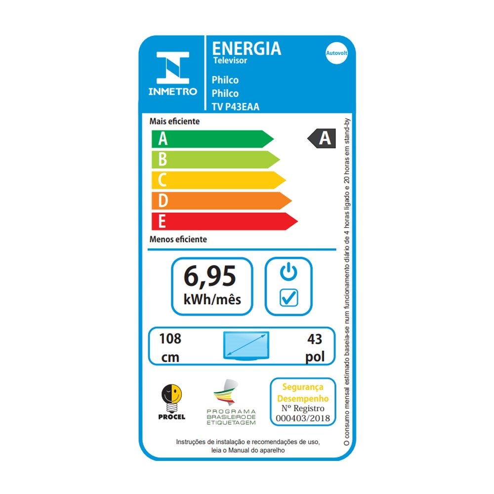 | Polegadas | 43" |