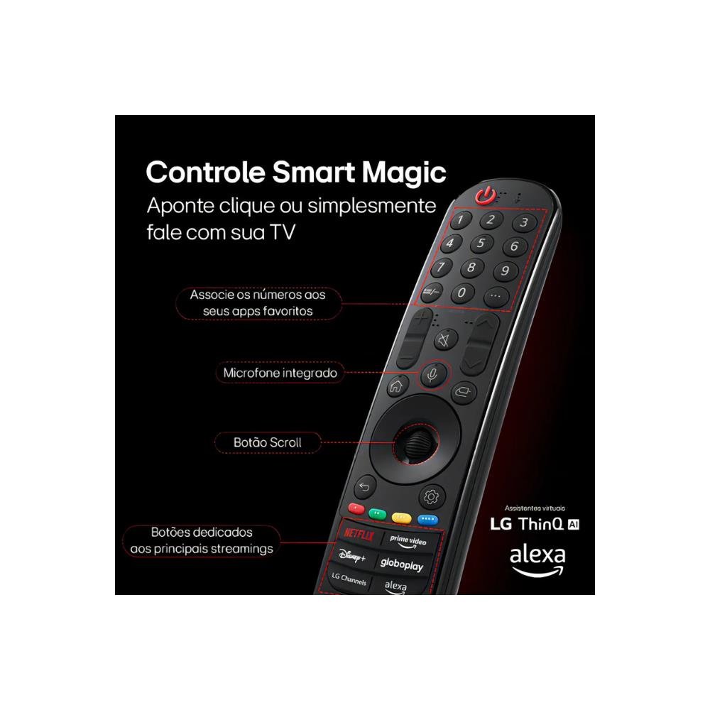 A Smart TV LG 55'' 4K 55UT801C0SA é a escolha perfeita para quem busca uma experiência de entretenimento imersiva e de alta qualidade. Com uma tela de 55 polegadas e resolução 4K, cada detalhe ganha vida, proporcionando imagens nítidas e vibrantes. O suporte a HDR garante que você desfrute de cores mais ricas e contrastes impressionantes, elevando suas sessões de cinema e maratonas de séries a um novo patamar. Equipado com o sistema operacional webOS 24, este modelo oferece uma interface intuitiva e fácil de navegar, permitindo acesso rápido a seus aplicativos favoritos. A integração com assistentes virtuais como Alexa e ThinQ AI torna a interação ainda mais prática, permitindo que você controle sua TV com comandos de voz. Além disso, a conectividade Wi-Fi e Bluetooth facilita a conexão com outros dispositivos, ampliando suas opções de entretenimento. Com duas portas USB e três HDMI, você pode conectar diversos dispositivos, como consoles de jogos e reprodutores de mídia, sem complicações. O design elegante e moderno se adapta a qualquer ambiente, enquanto o sistema de montagem VESA embutido oferece flexibilidade na instalação. A eficiência energética A garante que você aproveite suas horas de diversão sem se preocupar com o consumo excessivo de energia. Pesando apenas 14,2 kg, a LG 55UT801C0SA é fácil de posicionar e se destaca pela sua qualidade e desempenho. Transforme sua sala de estar em um verdadeiro cinema com esta Smart TV que combina tecnologia de ponta e design sofisticado.U