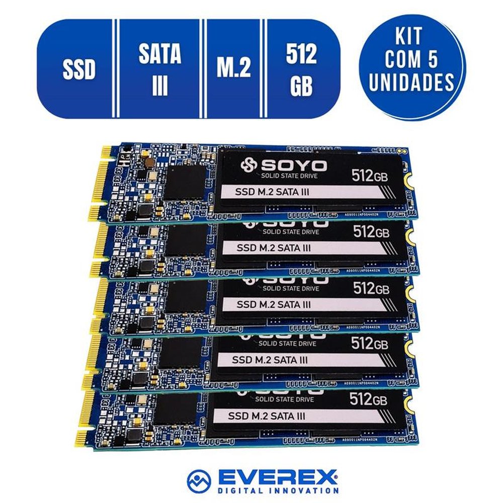 SSD 512GB M.2 SATA III 560MB/s - SOYO - KIT Com 5 UNIDADES SSDs ou Drives de Estado sólido já não são mais apenas um luxo, mas uma verdadeira necessidade. Mais rápidos e seguros que os HDs mecânicos convencionais, eles permitem maior performance para o seu sistema, programas e arquivos. Ainda diminuem o risco de perda de informações, sendo menos vulneráveis a quedas pois não contém partes móveis ou magnéticas. A SOYO conta com opções com interfaces SATA ou PCIe adequando-se à sua necessidade! Fabricante Soyo Capacidade 512GB Interface SATA Revision 3.2 Form Factor m.2 2880 Velocidade de Leitura 560MB/s Velocidade de Gravação 540MB/s