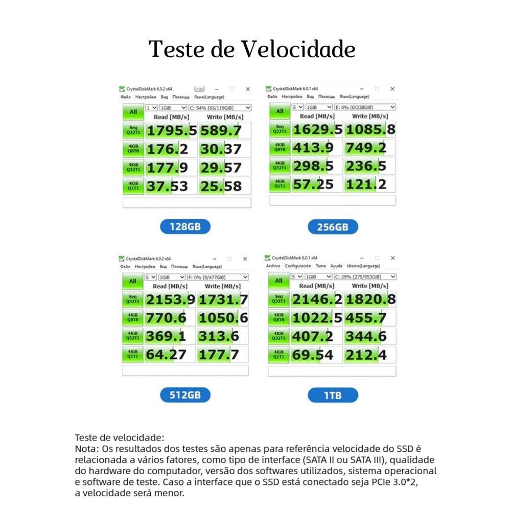 - Capacidade: 128gb, 240gb, 480gb (Escolha na variação do anúncio)