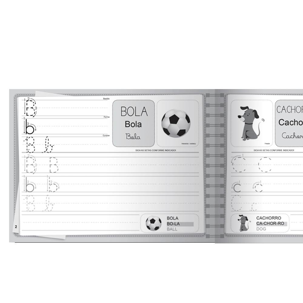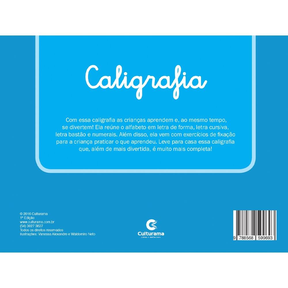 "Esta caligrafia reúne numerais e alfabetos de letra cursiva, bastão e de forma. Além disso, ele vem com execícios de fixação para a criança praticar o que aprendeu!" Capa: Cartão 250g, UV Brilho Miolo: Off set PB 90g Formato: 20x27cm Pgs: 48 Acabamento: Lombada quadrada Cx com 60 unidades Código de barras: 9788568599693 Idade recomendada: 6 Anos DUN14: 17898637222021
