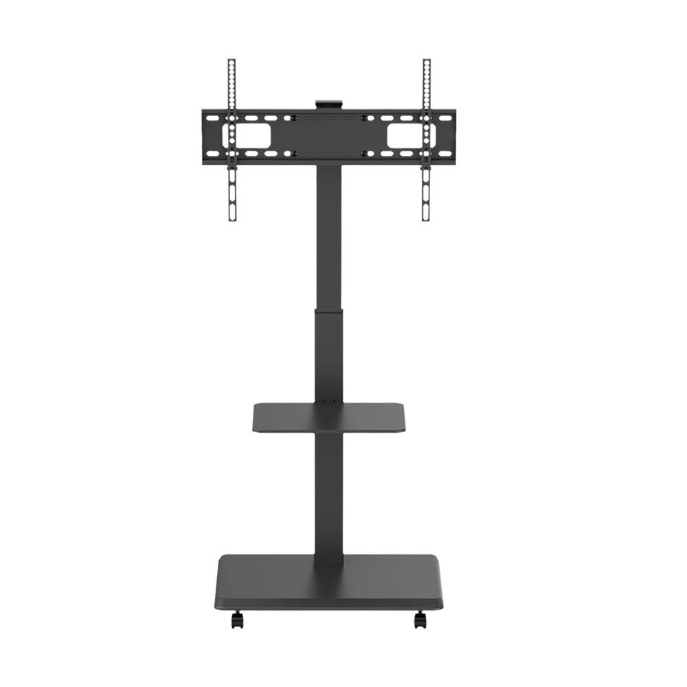 SUPORTE RACK PARA TV DE 37 A 75" ATÉ 40KG COM BANDEJA - SR160P Optimize a experiência de visualização e a comodidade de armazenamento com o nosso carrinho para televisor SR160P. Oferece grande estabilidade e mobilidade, servindo como uma solução de montagem autônoma ou integrando-se perfeitamente com armários de TV para um aspeto elegante e organizado do espaço. A instalação fácil, os ajustes de inclinação e altura sem esforço e uma prateleira de equipamento removível são vantagens para os utilizadores. - Gestão de cabos: mantém tudo organizado