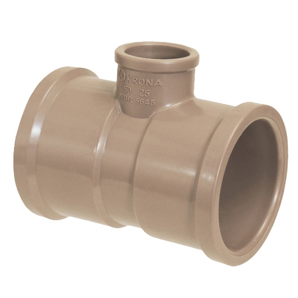 O Tê de Redução Soldável é uma conexão em PVC marrom, desenvolvida para instalações hidráulicas de água fria em sistemas residenciais, comerciais e industriais. Permite a ramificação de tubulações com redução de diâmetro, proporcionando a vazão correta conforme o projeto. É resistente à corrosão, atóxico, leve e de longa vida útil, com juntas soldáveis a frio que facilitam a instalação. Suporta até 45°C de temperatura e 7,5 kgf/cm² de pressão.