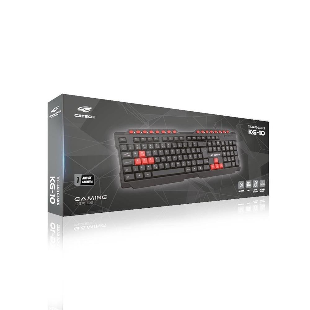 Teclado Gamer C3tech Kg-10V2bk Multimídia Preto/Vermelho Usb