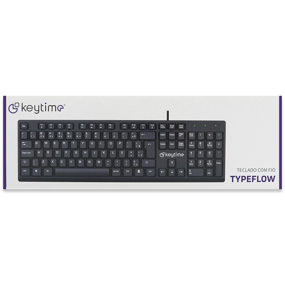 Teclado Keytime Office Typeflow Abnt 2 12 Teclas Multimídia Usb 2,0 Cabo 1,4M Preto - Kyt00009