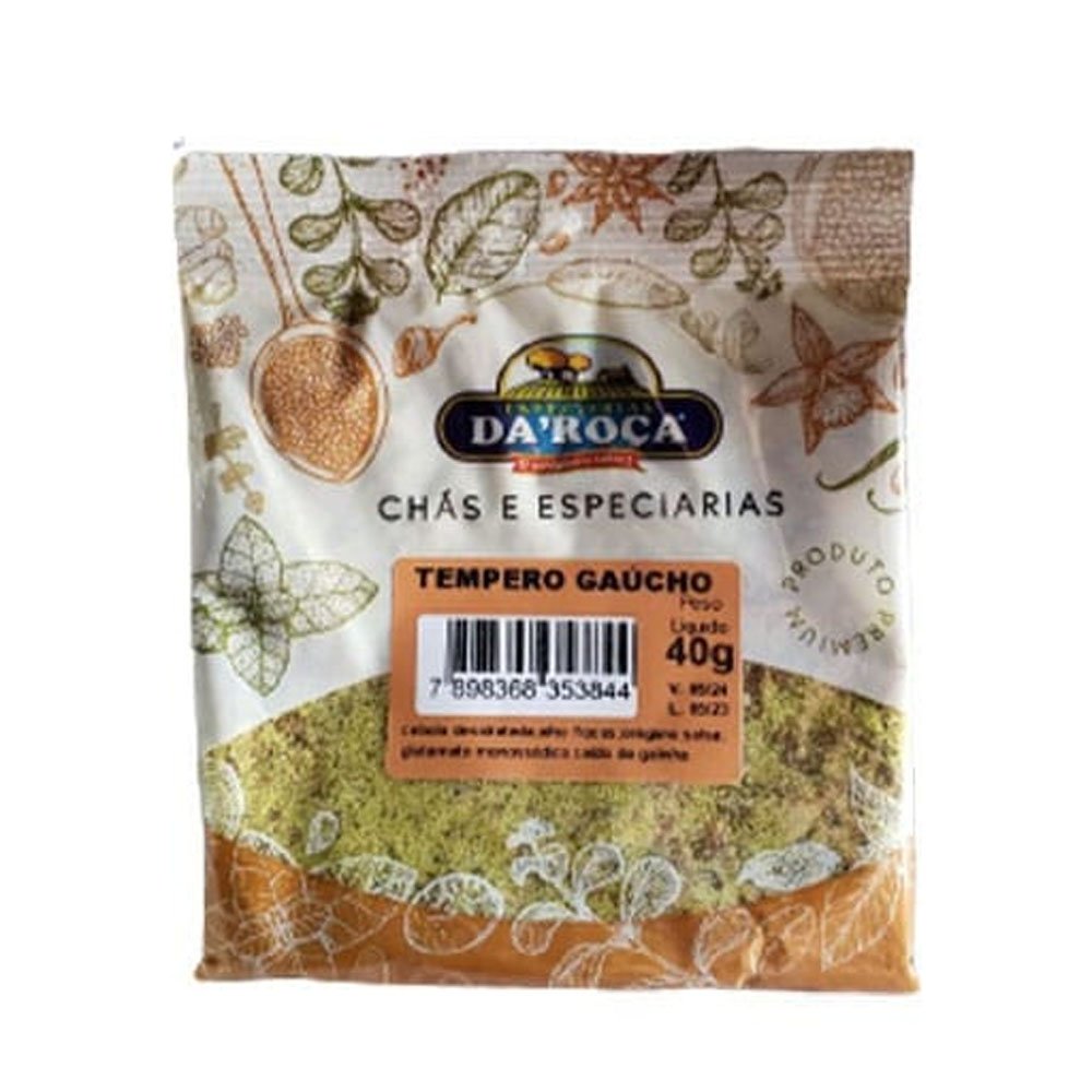 Tempero gaúcho Da Roça Disponível em embalagens de 40g. Tempero gaúcho.