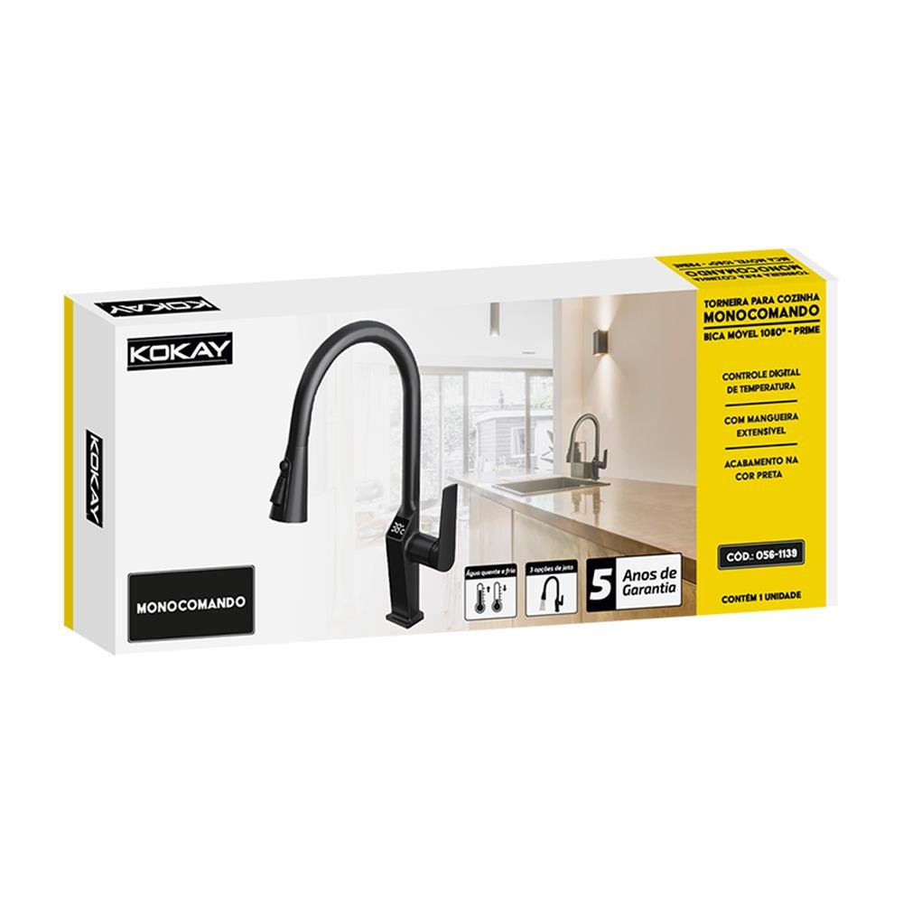 A Torneira para cozinha monocomando bica móvel 1080° Prime da KOKAY possui um design moderno e funcional. Com 3 opções de jato: concentrado, spray e chuveirinho, possui mangueira extensível embutida e controle digital de temperatura para maior praticidade e conforto, além de controlar a vazão e a temperatura da água com um único movimento, proporcionando fluxo e temperatura ideais durante a utilização. É feita de metal cromado de alta qualidade, que garante durabilidade e resistência à corrosão. Ela também tem um acabamento fosco que evita marcas de dedos e manchas na superfície. Ela é fácil de instalar e você vai se surpreender com a diferença que ela fará na sua cozinha! KOKAY: Um mundo de facilidades para você.