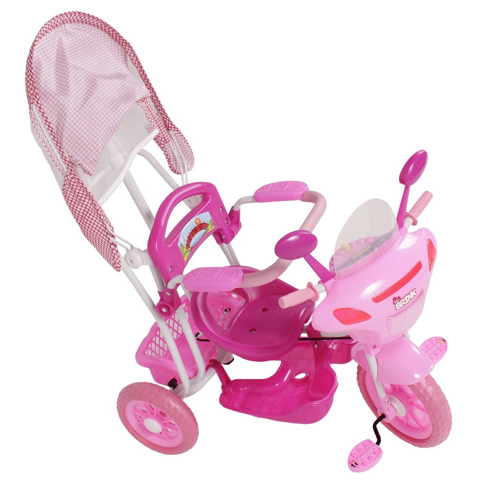 Triciclo Moto com Capota Rosa 2 Em 1 - Passeio e Pedal Bel