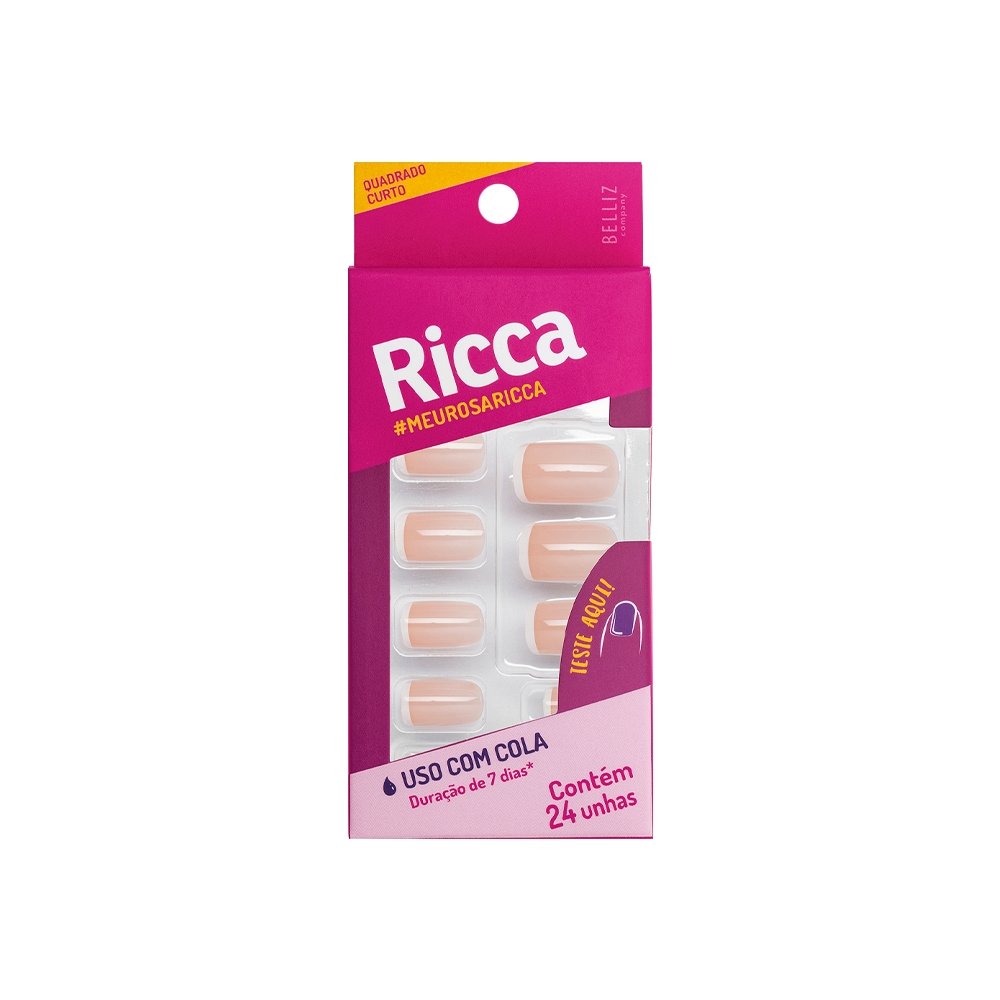 Unha Postica Ricca N?o Adesiva Francesinha Rosa 24 Unidades