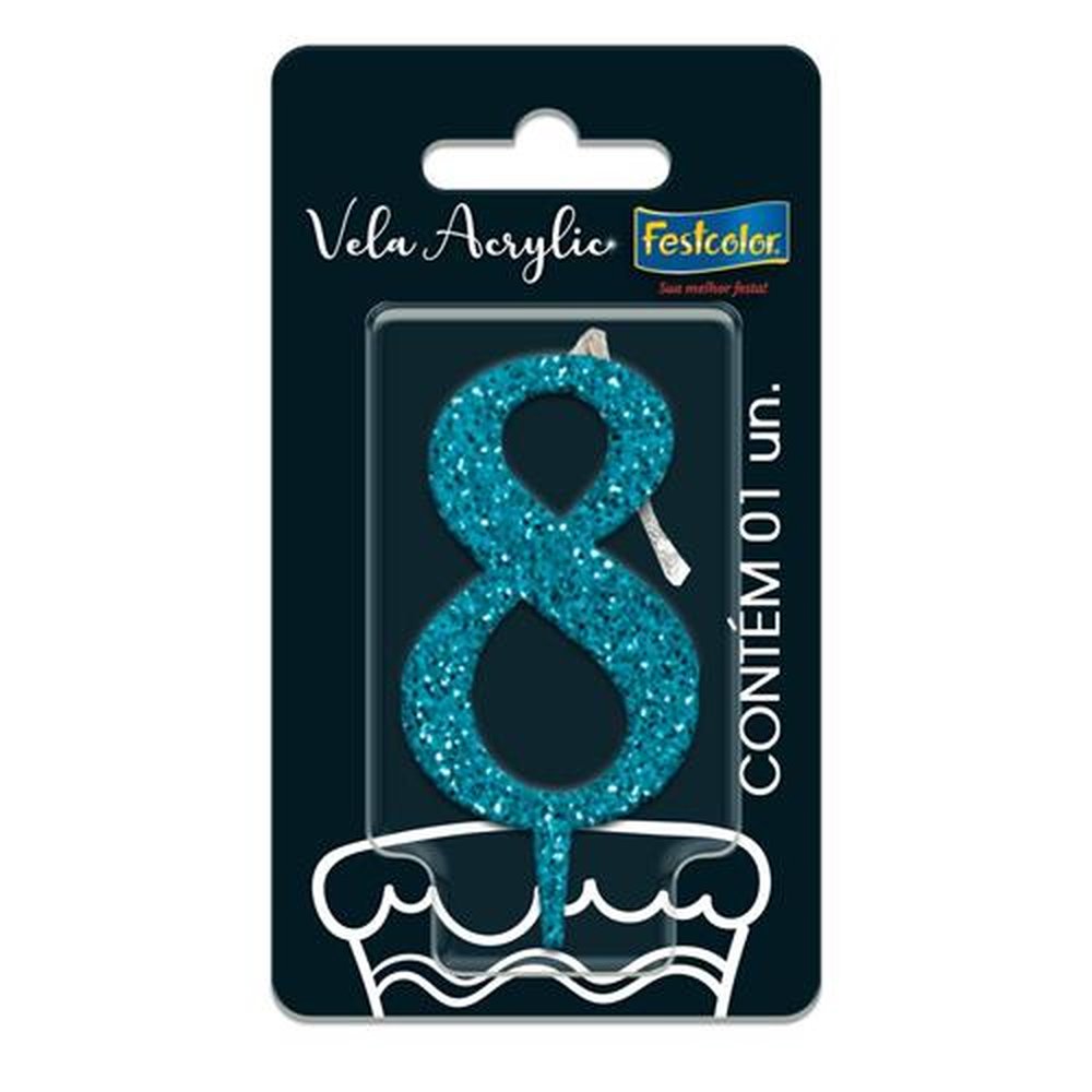 Vela Acrylic Glitter Azul N 8