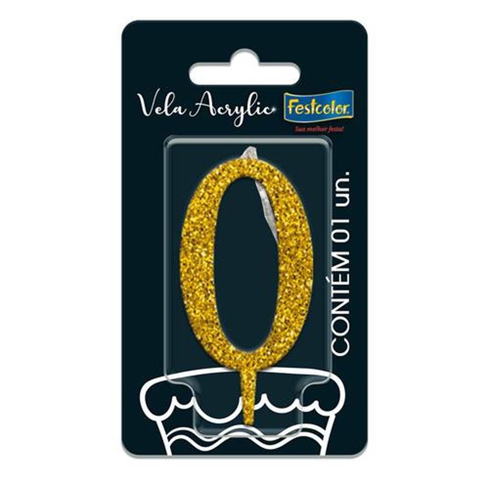 Vela Acrylic Glitter Dourada N 0