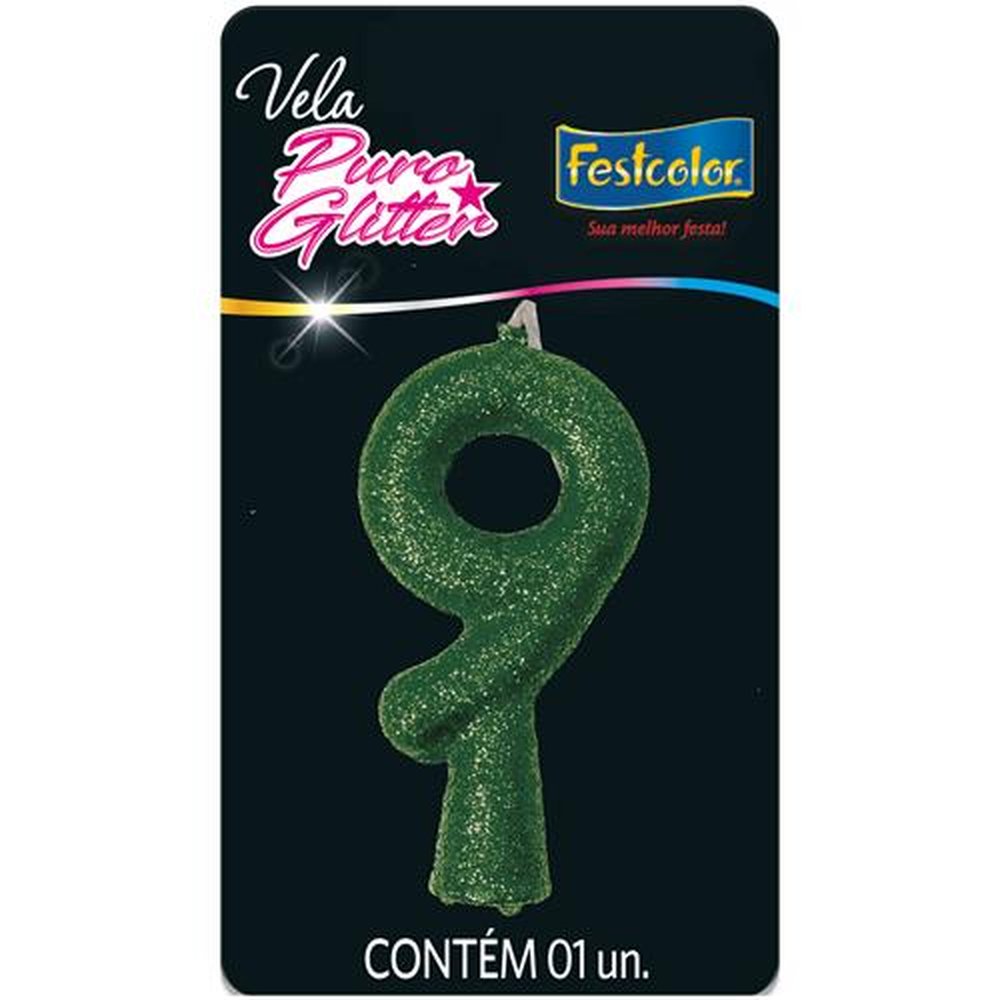 Vela Puro Glitter Verde N 9 - Embalagem com 1 unidade.